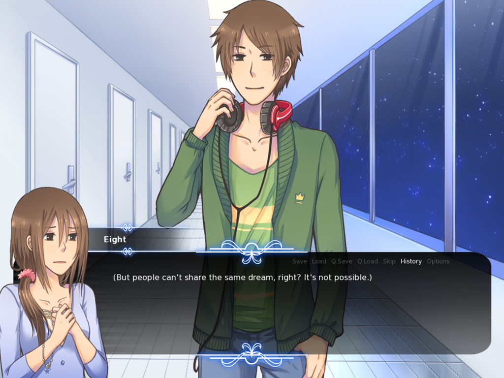 エイトは、見覚えのある顔を見つけて安堵する。彼を見るだけで、彼が自分の兄弟だとわかる。たとえお互いの名前を思い出せなくても。彼女は、自分たちが夢の中に閉じ込められていると考えている。彼女の兄弟は違う考えを持っている。少しずつ、彼らは散らばった記憶を繋ぎ合わせて「目覚め」ていく。結末は、どちらが正しいと思うかによって変わる。