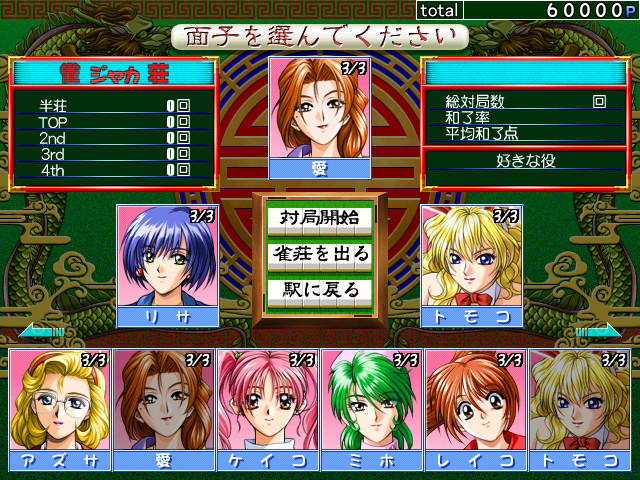 これは、エルフの4つのゲーム(各ゲームから3人の女の子)とジャンジャカジャンの10人の女の子のキャラクターが登場する脱衣麻雀ゲームです。 各ゲームの女の子と遊ぶためには、各ゲームの男性保護者を倒す必要があります。