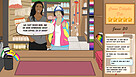 クラウン・デライツ・デリは、複数の言葉/方言の選択肢があるビジュアルノベルです。ブルックリンの食料雑貨店のレジ係として、英語、AAVE(アフリカ系アメリカ人バーナキュラー英語)、またはスペイン語で多様な登場人物と会話をし、上司のために五つ星の評価を維持するように努めます。