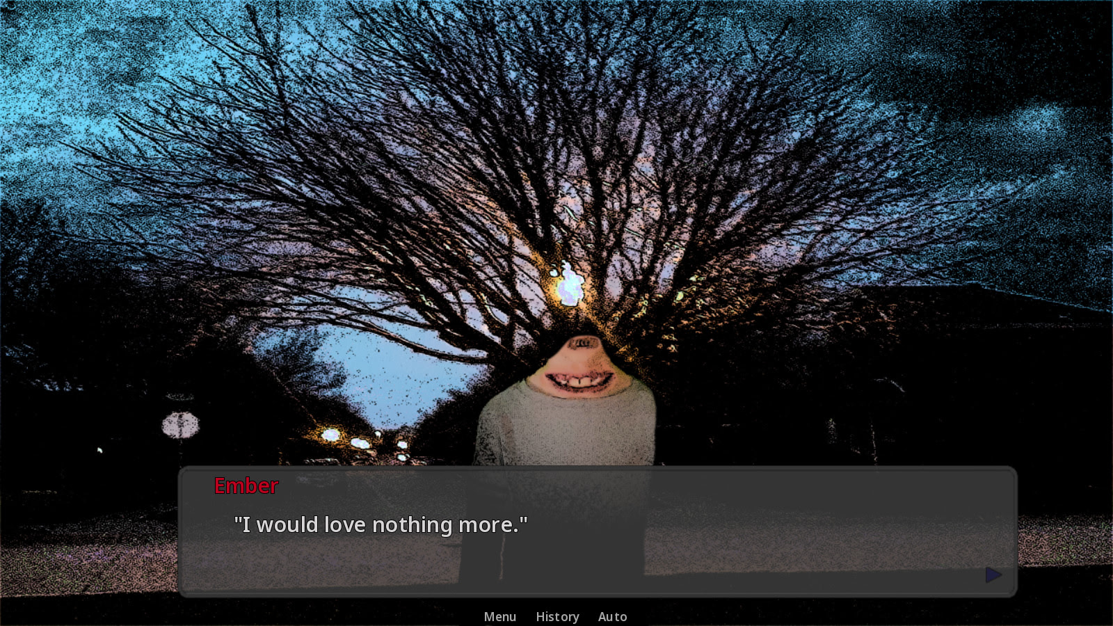 あなたは人間ですか? このゲームでは、人間としてプレイできます! 一日を始めて、普通の日常生活を送り、その過程で新しい友達を作りましょう。難しい選択をするのが嫌いですか? 幸運なことに、このゲームには一切ありません! あなたはただ座って、この短いビジュアルノベルを楽しむだけでいいのです。ドアの向こうに何かが隠されているかもしれませんが、そうでないかもしれません。