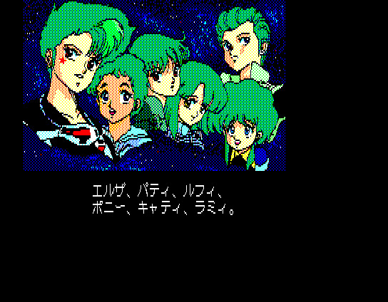 その船には、エルザ(艦長)、ラビィ(リーダーシップを発揮するキャラクター)、ルフィ(向こう見ずなパイロット)、キャティ(謎めいた科学士官)、ポニー(ピンクの髪のおっちょこちょいな技術者)、パティ(頼りになる乗組員)、レミィ(かわいい子)の7人の女性だけが生き残っています。
