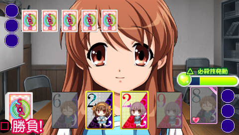 PSP版ゲームは、アニメシリーズの声優が担当するスポットアニメーションとボイスアクトを備えたインタラクティブノベルです。プレイヤーはキョンの役割を担い、メインキャストのメンバーと様々な交流を行い、その後の会話を読み進めます。『涼宮ハルヒの約束』の物語は「涼宮ハルヒの溜息」をベースにしていますが、シナリオや全体的な内容はゲームのために新たに書き下ろされたものです。ゲーム中の行動によって、複数のエンディングを迎えることも可能です。インタラクティブな体験に加え、ビーチバレーなど、いくつかのミニゲームをプレイすることもできます。バンダイは、キャラクターに生き生きとした表情を与える「モーションポートレート」技術を新たに採用し、私たちが愛してやまないヒロインたちの「生きている」ような姿を実現しています。