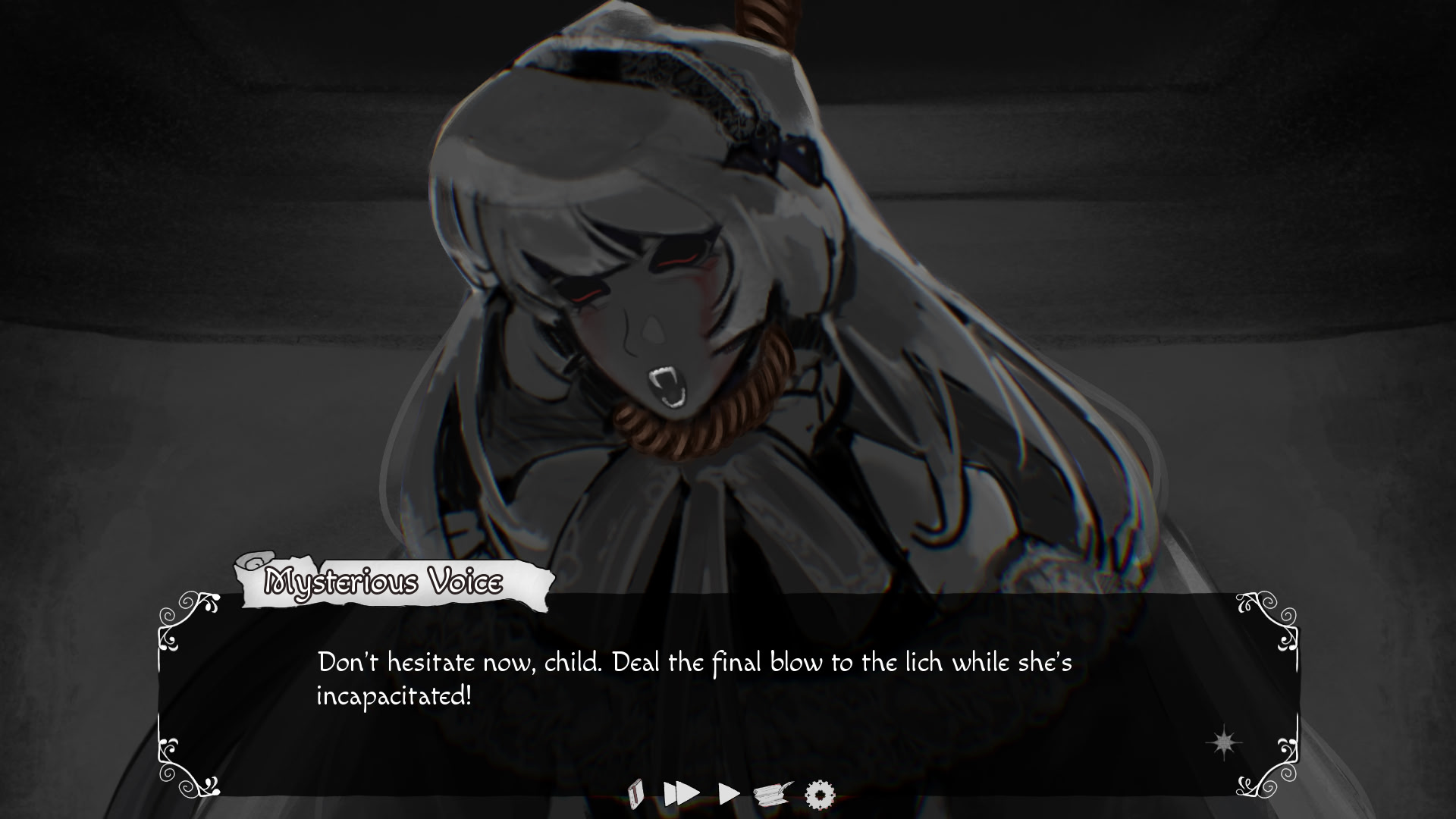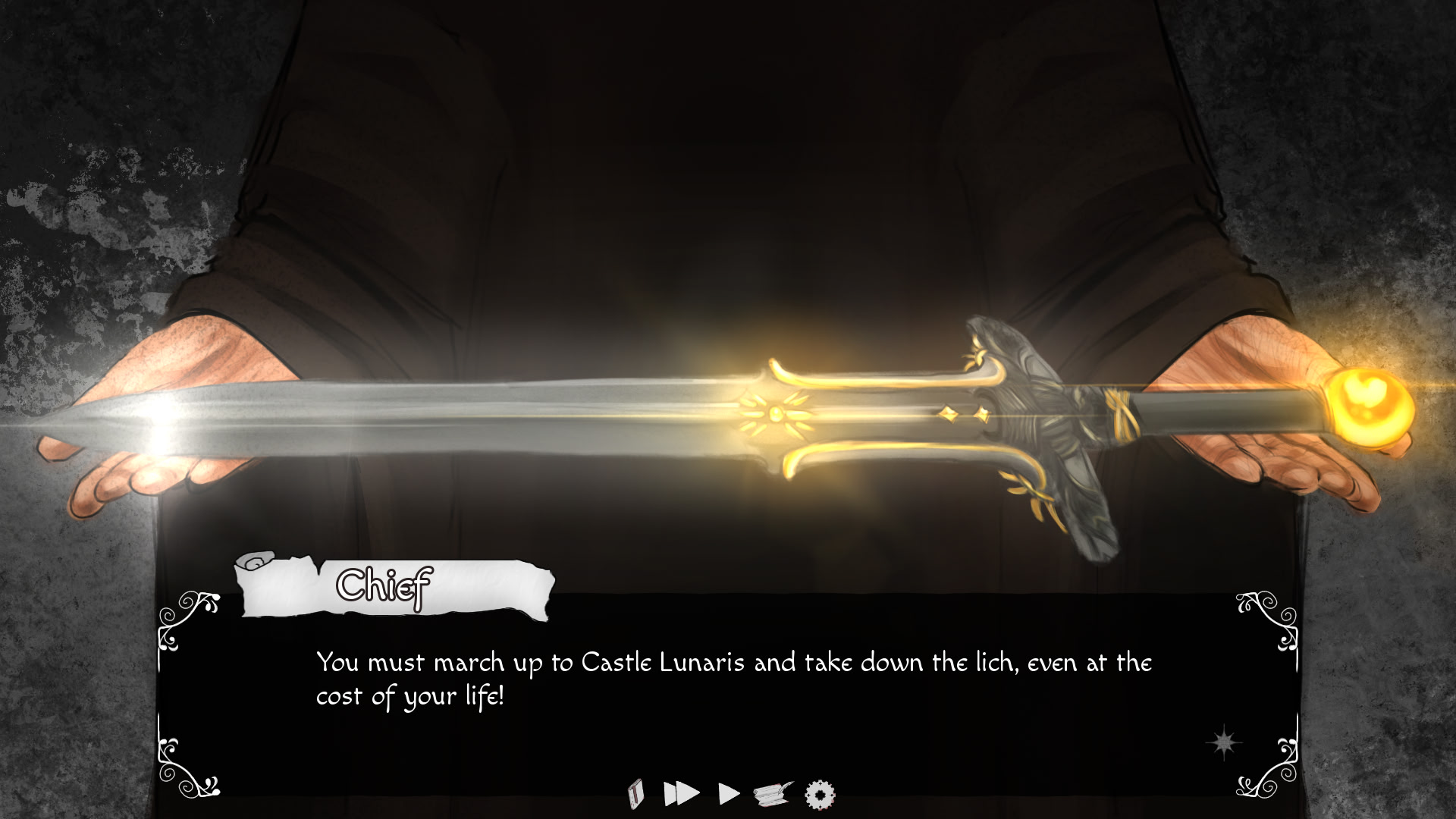 あなたは太陽の女神ソレインに選ばれた英雄であり、アンデッドの死霊術師から村を救う運命にある。進むべき道を選べ:死霊術師を倒して村を救うか?それとも、与えられた運命に疑問を抱くか?