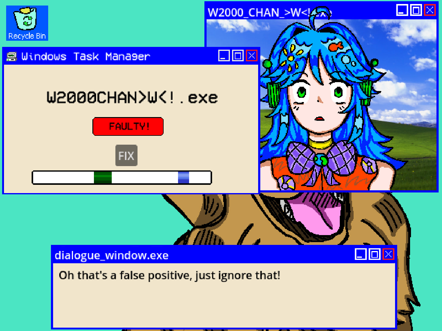 古いコンピューターを起動して、仮想Windowsアシスタント、W2000CHAN>W<.exe に会いましょう!