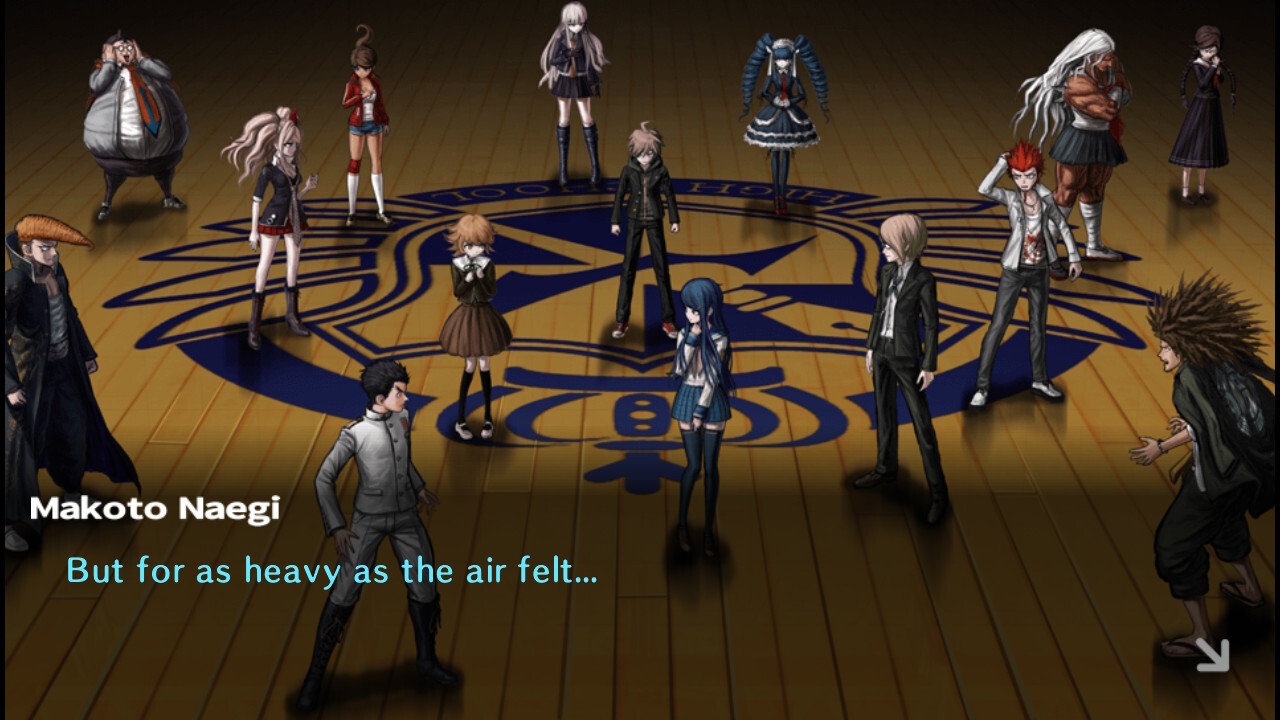 しかし、誠が初日の授業のために到着すると、突然意識を失い、目を覚ますと学校内の教室にいることに気づく。窓には鉄格子がはめられ、ドアは施錠されている。彼が廃墟と化した汚れた廊下を探索すると、何かがおかしいことは明らかになる。彼と新しいクラスメートは体育館に向かい、そこでモノクマと名乗り、学園長であると主張する狂ったロボットのクマが宣言する。「お前たちはこれからここで生活することになる。自由になりたければ、唯一の選択肢は…殺人だ。」