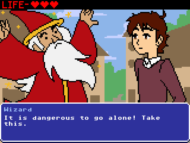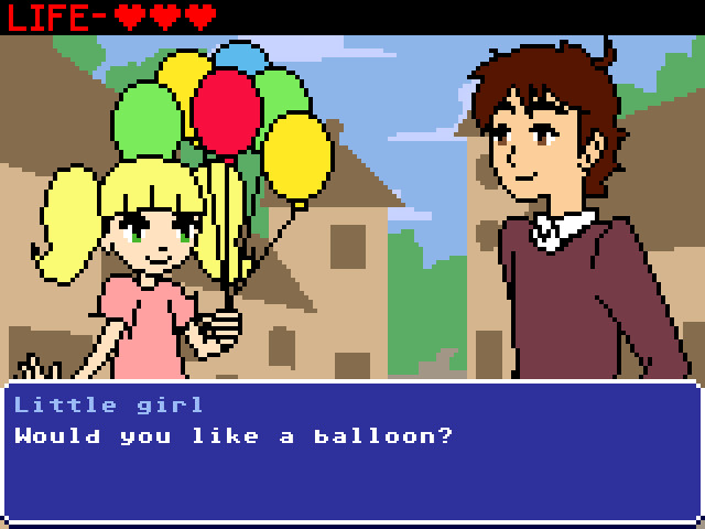 「これはLudum Dareのために作られた短いビジュアルノベルです(そのため、誰もが我慢できるように簡単にしました)。テーマは「一人で行くのは危険だ!これを持っていけ!」でした。」